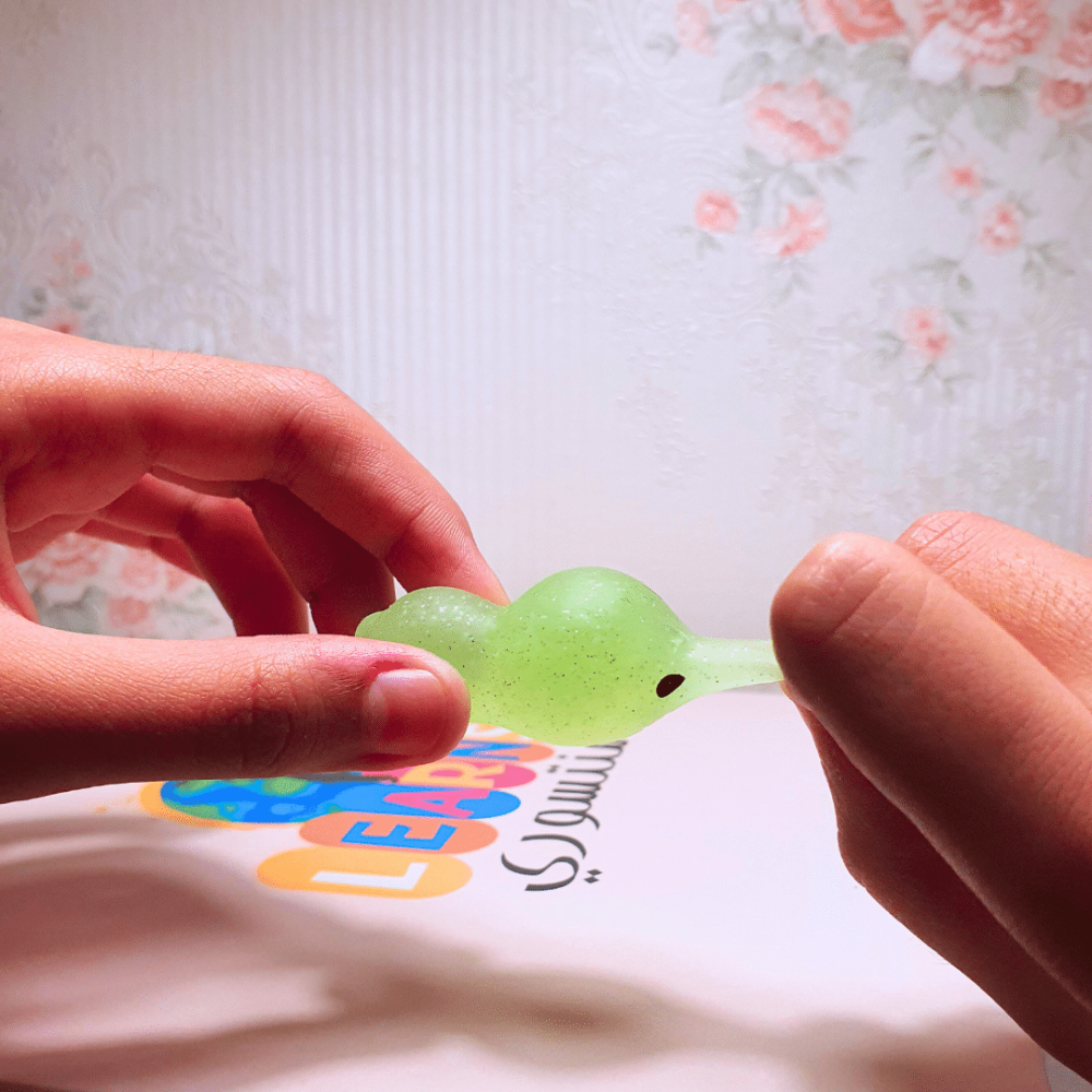 • قطعة مطاطية على شكل حيوانات ليلعب بها الطفل وتقوي عضلاته الدقيقة.
