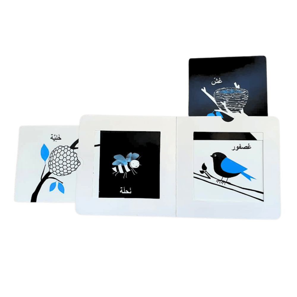 بيوت كتب التحفيز البصريقصة بيوت كتب التحفيز البصري .8 صفحات مصممة وفق نظام التعليم المبكّر. يمكنك استخدامها عند الاستلقاء، أثناء اللعب، أو القراءة. اسحب للأعلى وللأسفل، يمينًا ويسارًا،واكتشف ما تخبّئه لك الصفحات!
